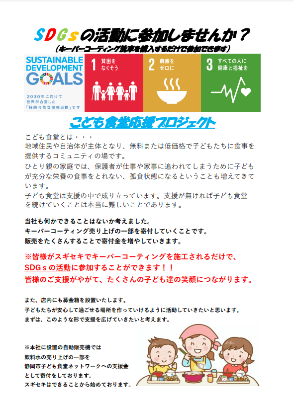仕組みとしては、弊社のSSでキーパーコーティングを施工して頂くと、その売り上げの一部が自動的に寄付金へと充てられるというお客様参加型の寄付となっております!!