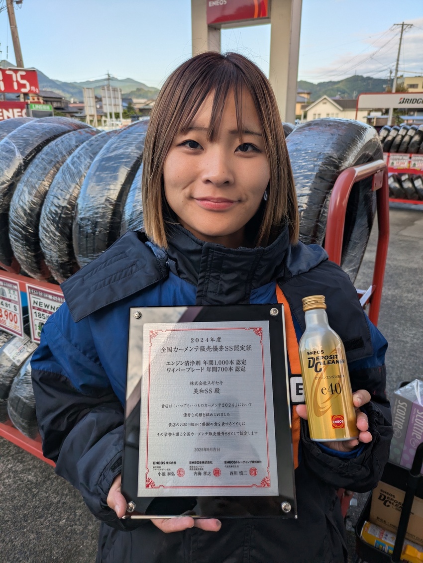 上記の成績により、全国カーメンテ販売優秀SS認定証を授与しました!!